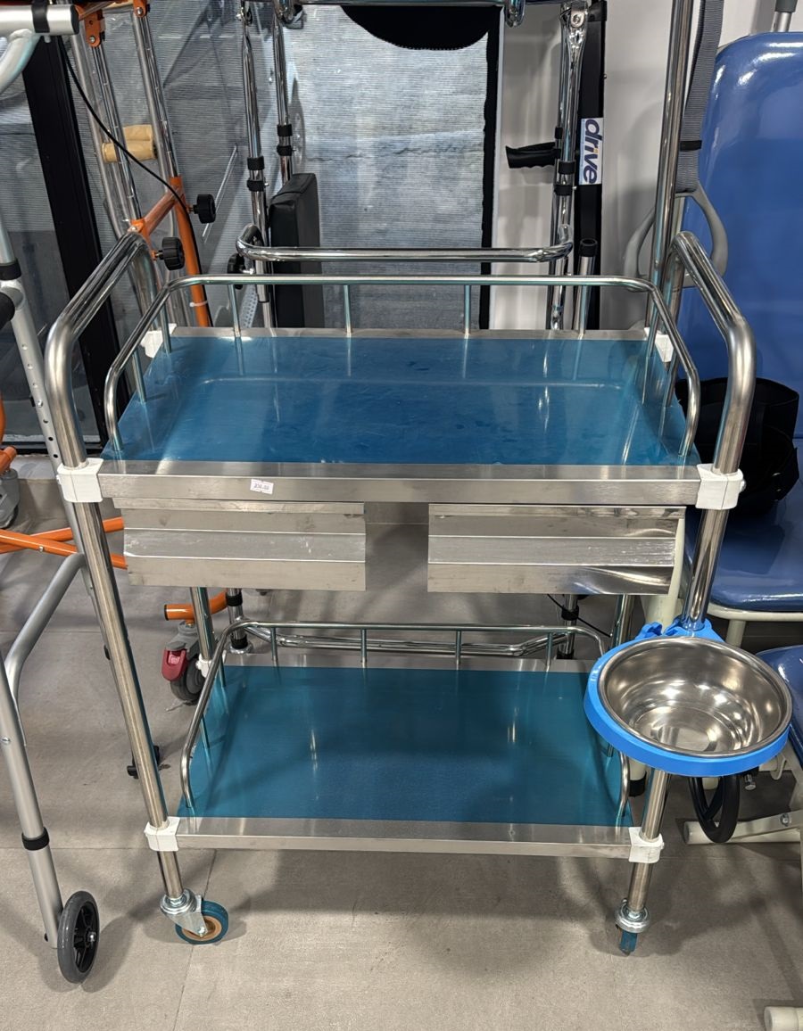 მექანიკური სამედიცინო საწოლი 2 ფუნქციით, მაგიდით და შტატივით