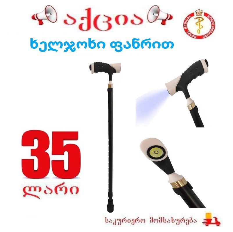 ფანრიანი ხელჯოხი ლედ ნათურით მუშაობს ელემენტებზე სიმაღლეში რეგულირებადი min 77 სმ max 97 სმ