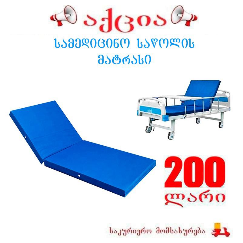 მექანიკური სამედიცინო საწოლი 2 ფუნქციით, მაგიდით და შტატივით
